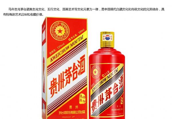 馬年生肖茅臺(tái)酒集生肖文化、五行文化、國(guó)畫(huà)藝術(shù)等文化元素為一體,是中國(guó)現(xiàn)代白酒文化和傳統(tǒng)文化的完美結(jié)合,具有特殊的藝術(shù)品味和收藏價(jià)值。