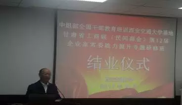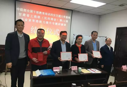 甘肅省工商聯(lián)(民間商會(huì))新一屆領(lǐng)導(dǎo)班子和領(lǐng)導(dǎo)機(jī)構(gòu)成員能力提升專(zhuān)題研修班于10月23日至27日在中組部中組部全國(guó)干部教育培訓(xùn)西安交通大學(xué)成功舉辦。甘肅省工商聯(lián)(民間商會(huì))副會(huì)長(zhǎng)、我司董事長(zhǎng)張建忠參加了此次專(zhuān)題研修班。