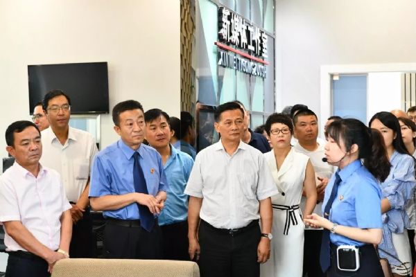 民營(yíng)企業(yè)家們?cè)谑性狐h組書記、檢察長(zhǎng)張學(xué)軍和黨組成員、副檢察長(zhǎng)蒲軍的陪同下,參觀了市院12309檢察服務(wù)中心、案管大廳、新媒體工作室、公益訴訟調(diào)查指揮中心和黨建活動(dòng)中心等檢察辦公辦案場(chǎng)所,現(xiàn)場(chǎng)聽取工作人員演示講解,近距離感受檢察工作流程。代表嘉賓不時(shí)詢問檢察機(jī)關(guān)的各項(xiàng)工作職能,張學(xué)軍檢察長(zhǎng)用平實(shí)易懂的語言詳細(xì)進(jìn)行了解答。