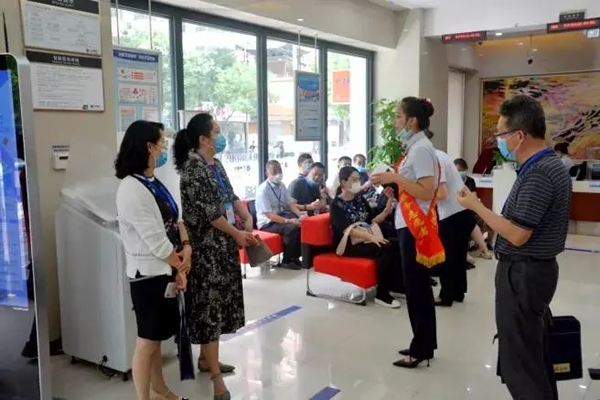 隨后,視察調(diào)研組一行參觀了市級文明單位蘭州銀行金城支行。在街道黨工委黨建集結(jié)號的引領(lǐng)下,蘭州銀行金城支行以文明精神引領(lǐng)業(yè)務(wù)發(fā)展,以文明力量推動經(jīng)濟管理,以文明信息指引服務(wù)前進,為居民群眾提供優(yōu)質(zhì)高效溫暖的金融服務(wù),力爭創(chuàng)建省級文明單位,代表和委員們現(xiàn)場體驗了金融行業(yè)的貼心服務(wù)。